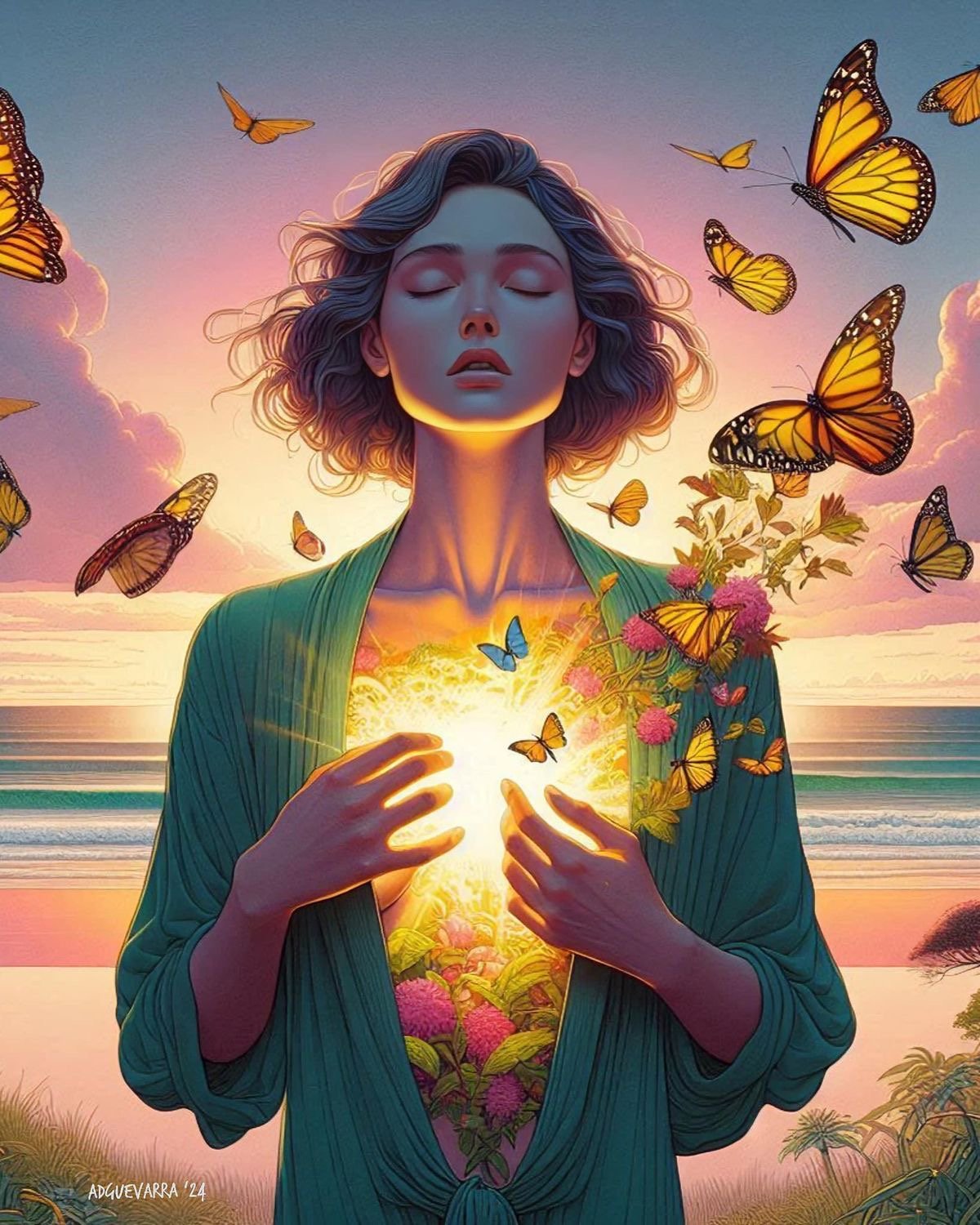 El femenino sagrado simboliza la conexión con la naturaleza,la creatividad, la intuición y la energía nutricia .Es un arquetipo que representa equilibrio y empoderamiento.
